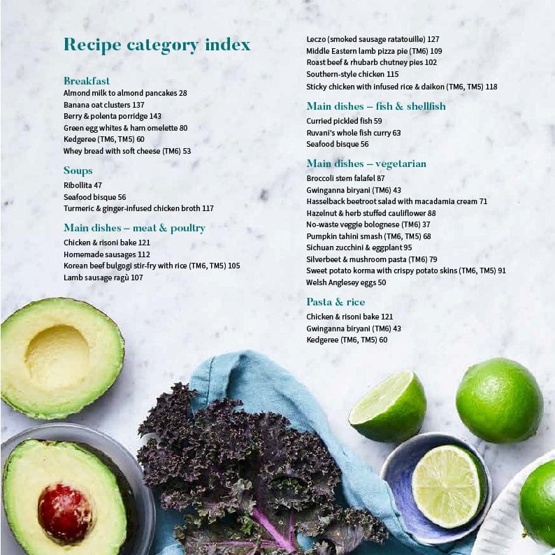 The recipe chapters are categorised by food groups rather than types of recipes, with the aim to help you plan your meals based on the ingredients you have on hand or what’s abundant and in-season. We’ve also included flavour combination inspiration and ideas for substituting out ingredients, as well as other delicious recipes to try out from Cookidoo® (our online recipe platform).