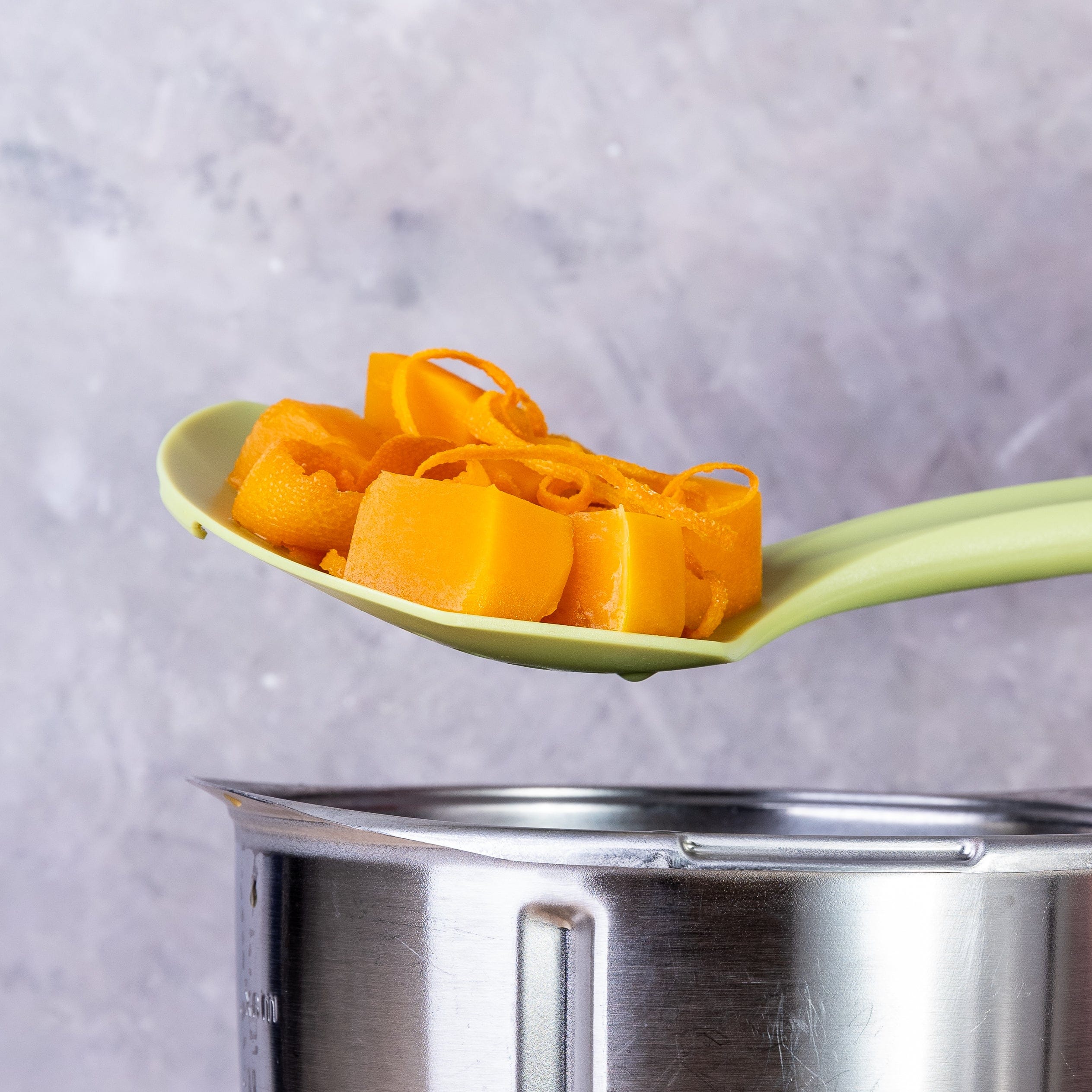 You’ve got the flat-edged Incredible Spoon to measure your ingredients and reach deep into the Thermomix® Bowl, between the blades, ladling and scraping out every serving of your sauces, soups and batters without leaving a scratch. We even popped an extra narrow tablespoon measure on the end of the handle for getting spices out of those fiddly little jars.