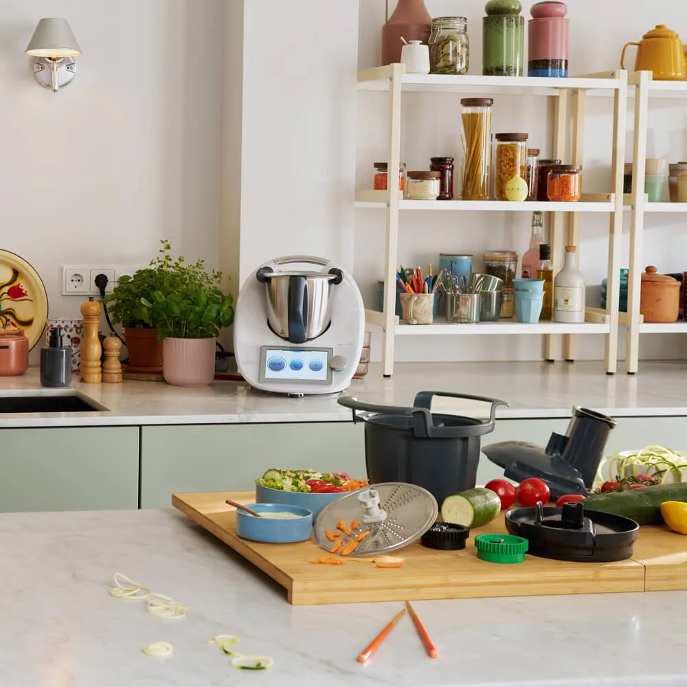 Thermomix® Cutter+ (Cutter & Spiralizer) is the perfect complement to your Thermomix® to style up your dishes in 6 different ways. Grate, slice and spiralize to add more health, style and shapes to your plate.